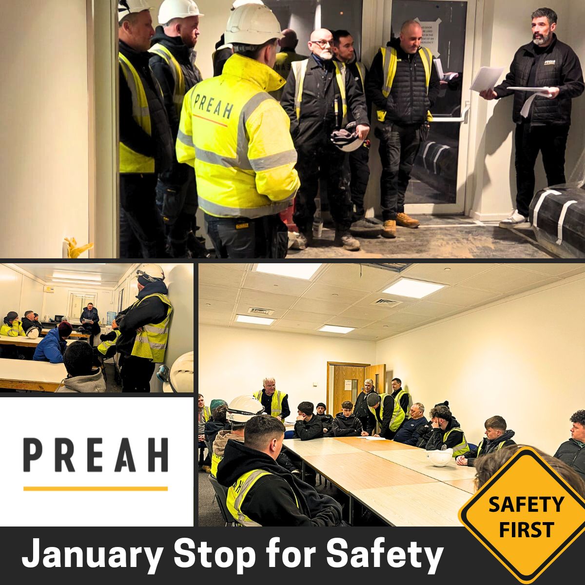 PREAH has kicked off the New Year with a focus on Health & Safety. On our return to work today from our annual Christmas shutdown, we held our “January Stop for Safety” discussions at each of our live project sites. Our Site Management teams, including Directors, attended to welcome back our operatives and subcontractors and to stress the importance of safety as we resume work. These sessions, including a review of the hazards to watch out for on returning to work after a break, are an excellent opportunity to engage directly with our teams and set the tone for a productive and safe year ahead. Director, Iain Hetherington, shared his thoughts on this long-standing tradition: “The January Stop for Safety is something I’ve personally championed for over a decade. It’s encouraging to see how engaged the entire workforce is, from management to site operatives. While January is often a time to set goals and ambitions, it can also be a challenging month for some team members. This initiative not only highlights Health & Safety but also focuses on wellbeing and checking in with one another after the holiday period.” We are proud of the PREAH team for their ongoing dedication to Health & Safety and, together, we will make 2025 a safe and successful year! #Health #Safety #Wellbeing #BetterBuildingServices